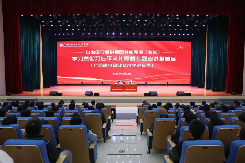 12月26日下午,根据自治区党委宣传部、自治区党委讲师团安排,自治区党委讲师团特聘教授(专家)、广西产业技术研究院党委委员、人工智能与大数据应用研究所所长叶波到taptap官网作学习贯彻习近平文化思想专题宣讲报告。校党委副书记陈科鹤出席报告会。