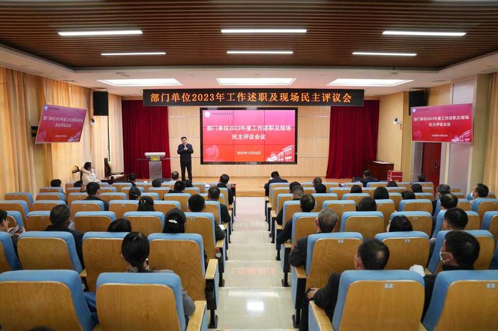 学校各部门、单位主要负责人和教职工代表参加工作述职及现场民主评议会。