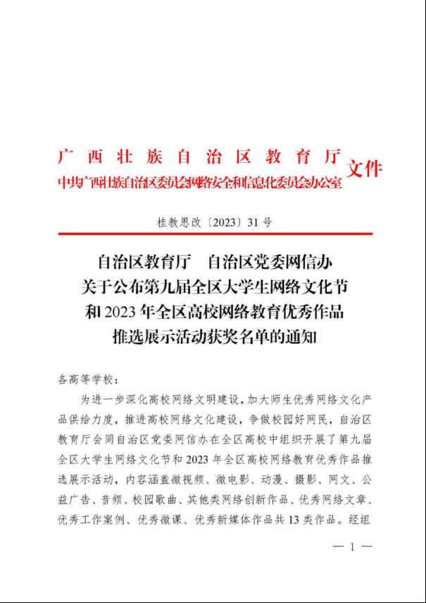 近日,根据自治区教育厅、自治区党委网信办下发《关于公布第九届全区大学生网络文化节和2023年全区高校网络教育优秀作品推选展示活动获奖名单的通知》,taptap官网在本次大赛中喜获佳绩,共有20项作品获奖,其中一等奖2项、二等8项、三等奖10项。同时,taptap官网荣获优秀组织奖。