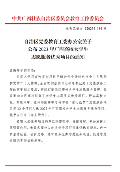 近日,自治区党委教育工委办公室下发了《关于公布2023年广西高校大学生志愿服务优秀项目的通知》,taptap官网“奉献热血,呵护生命,点亮爱心”志愿服务项目入选2023年广西高校大学生志愿服务优秀项目。