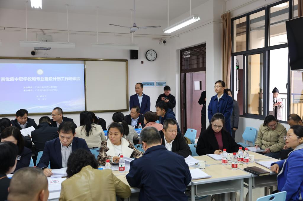 广西“双优计划”建设单位的校领导、职能部门负责同志、教师代表和第一轮自治区“双高计划”高职学校负责结对指导的负责同志参加培训。