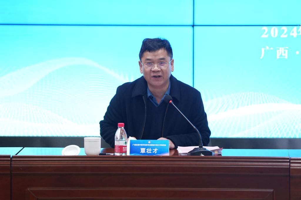 覃壮才在讲话中回顾了2023年我区中等职业教育发展取得的成绩,他表示,2023年5月教育部、自治区人民政府联合印发《推动产教集聚融合 打造面向东盟的职业教育开放合作创新高地实施方案》,在部区共建的框架下,我区科学统筹高中阶段招生工作、支持中职学校办学条件和专业建设、开展“双优计划”中职学校建设、深化中职教育教学改革、加强中职学校内涵建设,中等职业教育稳定规模、人才培养质量不断提升,取得了良好发展成绩。