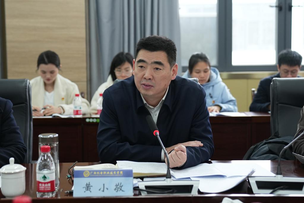 黄小敬指出,今年是新中国成立75周年,是实现“十四五”规划目标任务的关键一年,也是学校迈上新一轮“双高”建设新征程的开局起步之年,全校各级党组织要深入学习贯彻习近平总书记关于党的建设的重要思想和对广西重大方略要求,深入贯彻新时代党的建设总要求和新时代党的组织路线,学方略、谋创新、抓落实,认真谋划并高质量做好学校党建工作。他强调,学校党委和各二级党组织要深刻领悟“两个确立”的决定性意义,坚决做到“两个维护”,着力巩固拓展学习贯彻习近平新时代中国特色社会主义思想主题教育成果,严格落实“第一议题”制度、校院两级理论学习中心组学习制度、教职工政治理论学习和巡听旁听制度,持之以恒推动党的创新理论深化、内化、转化工作,常态化开展党史学习教育,推动习近平总书记对广西重大方略要求在学校落地生根。要着力推进“五基三化”深化年行动,持续增强基层党组织的政治功能和组织功能,充分发挥党员领航、“双带头人”先锋模范作用,抓好党建“标杆”院系和“样板”党支部建设,为新一轮“双高”建设团结奋斗。要着力抓实问题整改,持续深入抓好2023年度二级党组织书记抓基层党建工作述职点评的问题、巡察发现的问题和主题教育民主生活会查摆的问题的整改整治,把“问题清单”变为“成果清单”,不断提高党建工作质量。要着力强化责任担当,落实落细落具体主体责任、“第一责任人”责任和“一岗双责”,推动全面从严治党向纵深发展,为学校高质量发展提供坚强保障。