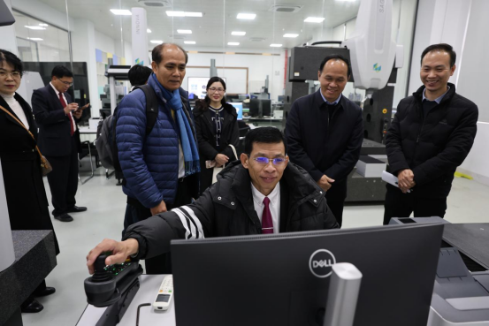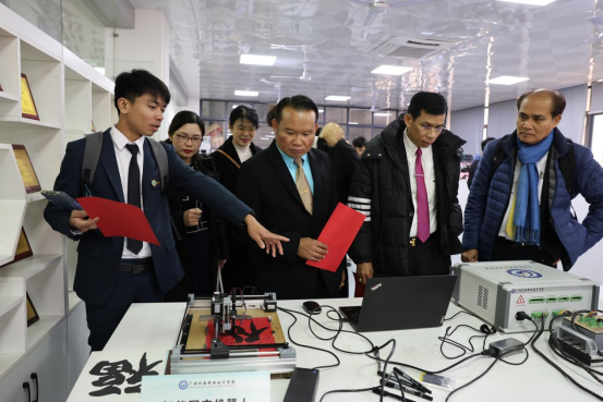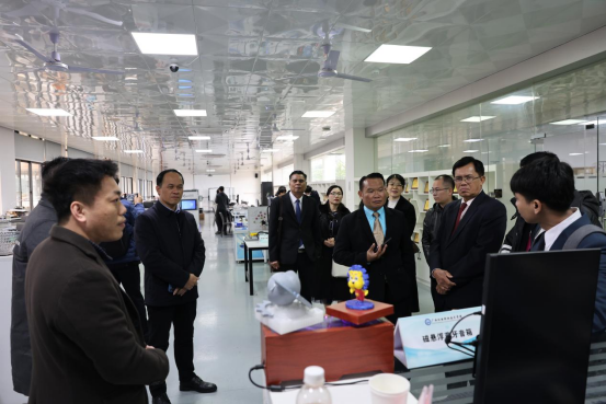 3月1日下午,在黄政艳和相关部门负责人的陪同下,泰国代表团先后参观了交通工程学院的新能源整车实训中心、taptap点点官网-上汽通用五菱校企合作实训基地; 电气工程学院的精益生产实训中心、智能制造工业机器人实训中心和创新实践中心;机械工程学院的教育部-瑞士GF智能制造创新实践基地、智能焊接技术中心等多个教学实践场所。参观过程中本颂竖起大拇指赞叹道:“中国的技术,中国的创新,中国的制造,很棒!”,对中国学生的创新能力和技术水平给予了高度评价。