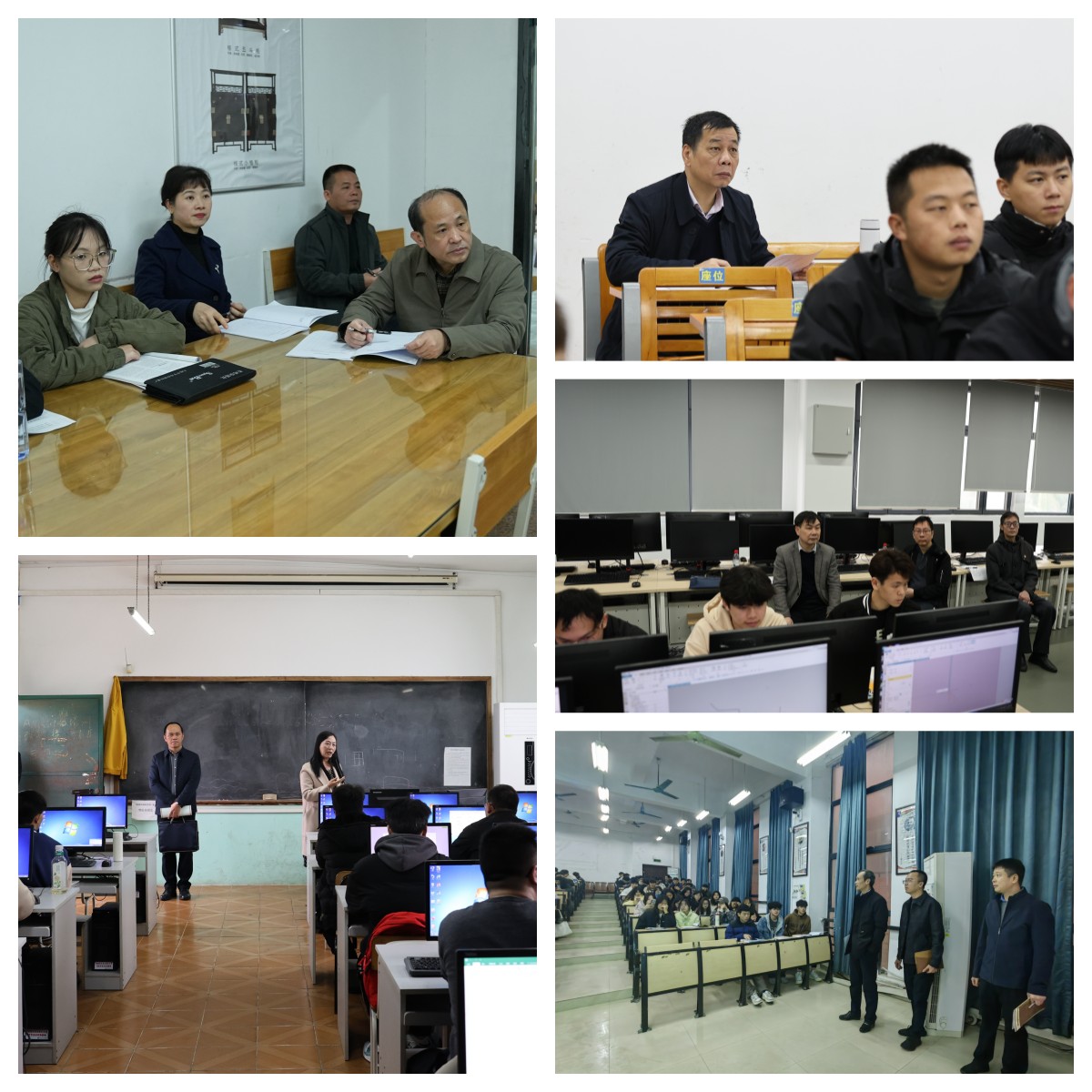 各相关职能部门和二级学院负责人陪同检查及巡课。