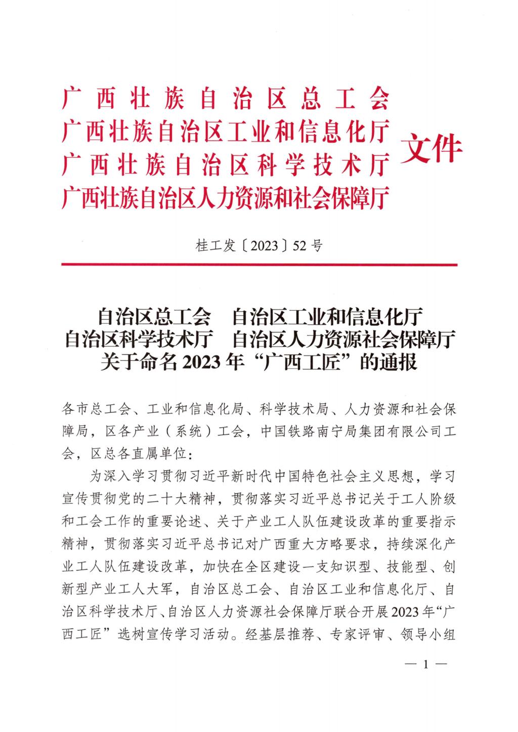 据悉,2023年“广西工匠”涵盖制造业、建筑业、电力、信息技术、教育、医疗、手工业等多个行业多个工种,是行业的顶尖技术技能人才,是劳模精神、劳动精神、工匠精神的优秀传承者。