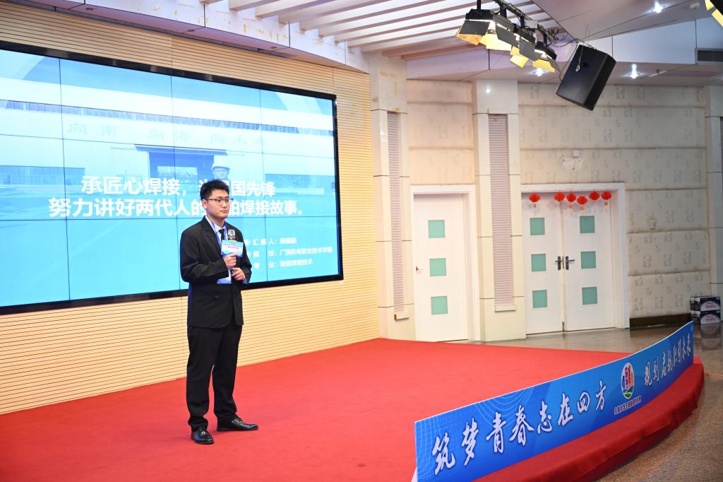 据悉,首届全国大学生职业规划大赛旨在引导大学生树立正确的成才观、就业观和择业观,科学合理规划学业与职业发展,提升就业竞争力。此次广西赛区现场总决赛分设“成长赛道”与“就业赛道”,成长赛道包括主题陈述和评委提问两个环节,主要考察选手职业发展规划的科学性和围绕实现职业目标的成长过程,通过学习实践持续提升职业目标达成度,增强综合素质和能力。赖振鹏同学从目标初心、自我认知、职业认知、职业成长、目标制定与实施五个方面进行了精彩展示,以“船舶焊工技师”为职业目标,以“向南、向海、向未来”为规划主题,结合taptap官网“双高”专业特色,向评委讲述了两代人的船舶焊接故事。