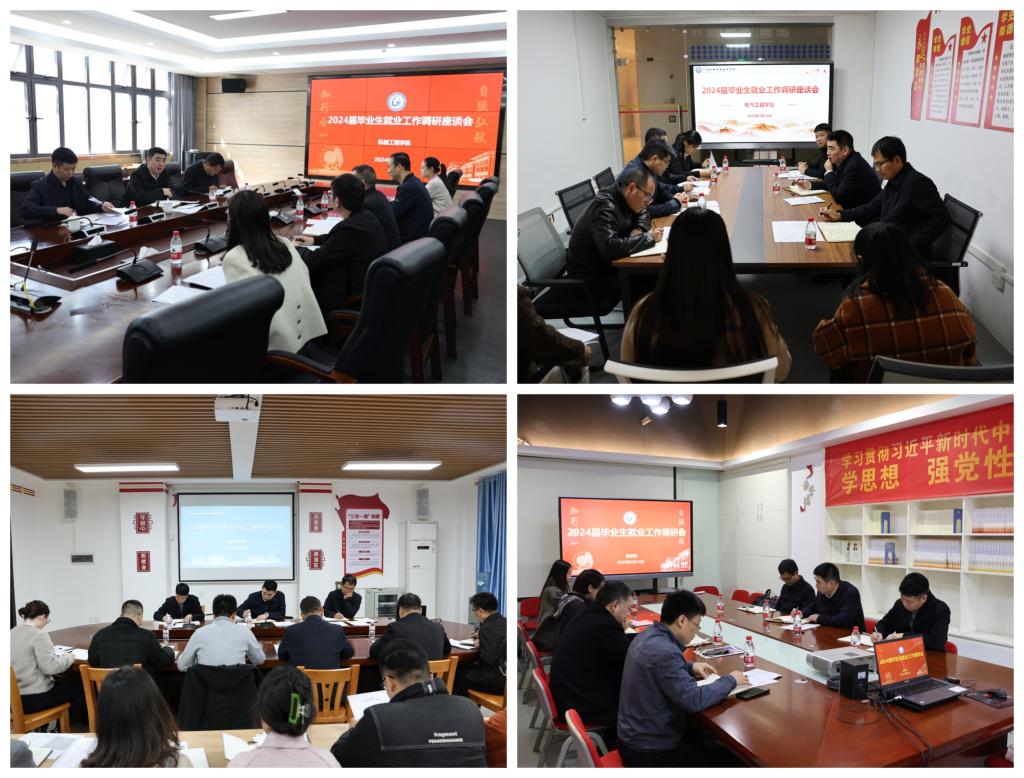 调研中,交通工程学院、建筑工程学院、艺术设计学院、公共管理学院、机械工程学院、电气工程学院、信息工程学院和商学院等8个二级学院负责人汇报了今年以来各学院就业创业工作开展情况,存在的困难以及采取的工作举措。