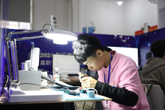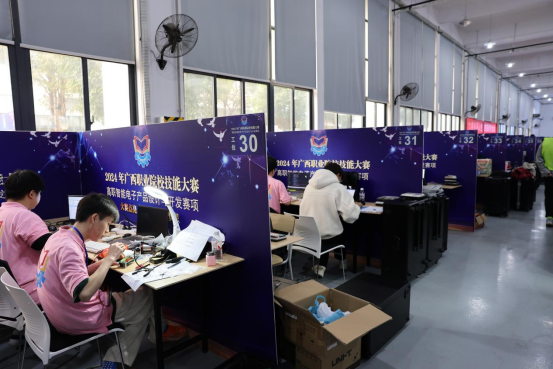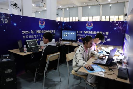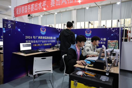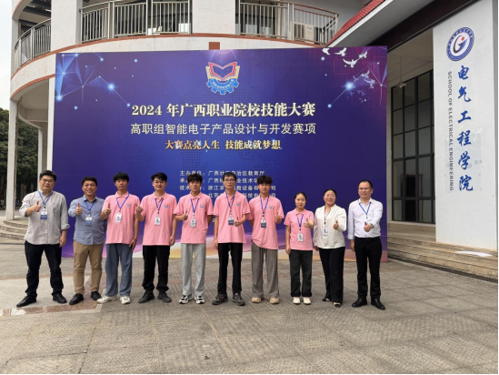 由自治区教育厅主办,taptap官网承办的2024年广西职业院校技能大赛高职组《智能电子产品设计与开发》赛项于3月16日在taptap官网举行,共有来自全区23所高职院校、45支参赛队的135名选手参加角逐。经过紧张而激烈的比拼,taptap官网最终斩获两个一等奖,其中由钟国文、罗捷老师指导的电子2101班刘星煜、电子2201班何国禄、电信2202班黄武鑫组成的一队位列该赛项第一,他们将代表广西参加国赛,由曹华、马子龙老师指导的电信2202黄千桂、电信2202杨宗霖、电子2301曾子情组成的二队获得该赛项第五名。