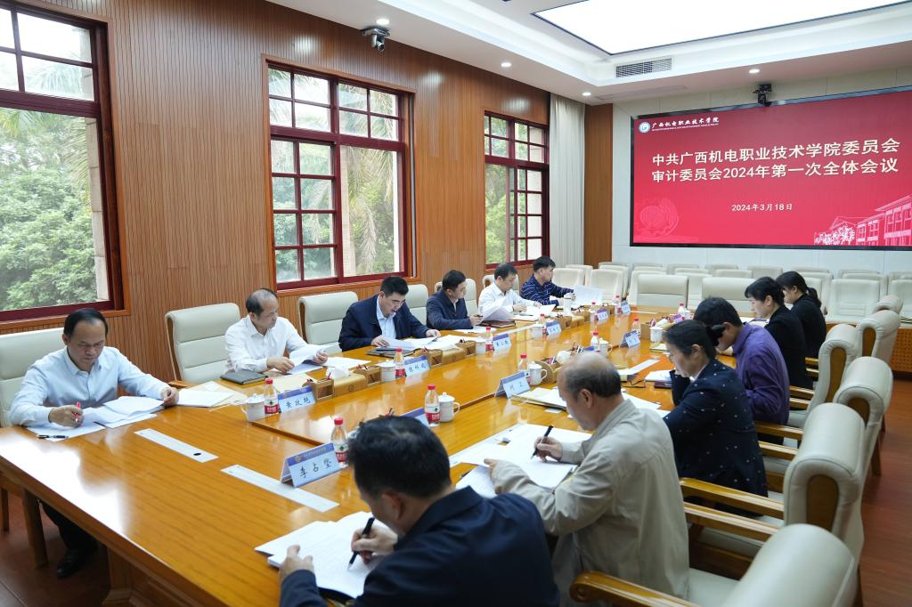 3月18日,学校党委审计委员会在行政楼第一会议室召开2024年第一次全体会议,深入学习贯彻习近平总书记关于审计工作的重要讲话和重要指示批示精神,贯彻落实2024年全国、全区审计工作会议精神,听取审计工作情况汇报,审议通过有关文件,研究部署2024年审计工作。校党委书记、审计委员会主任黄小敬主持会议并讲话,校党委副书记、校长、审计委员会主任吴世先出席会议并讲话。校领导、审计委员会副主任陈科鹤、乐其顺、黄政艳出席会议。