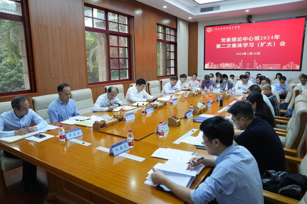 3月26日,学校党委理论学习中心组进行2024年第二次集体学习,深入学习习近平总书记关于发展新质生产力的重要论述,联系思想和工作实际,进行研讨交流。校党委书记黄小敬主持学习并讲话,学校领导吴世先、陈科鹤、乐其顺、黄政艳,校长助理秦培林、黎盛寓等参加学习。