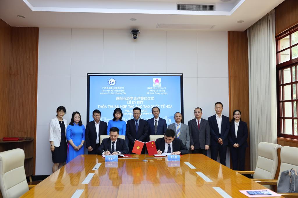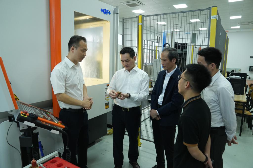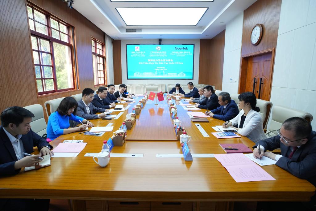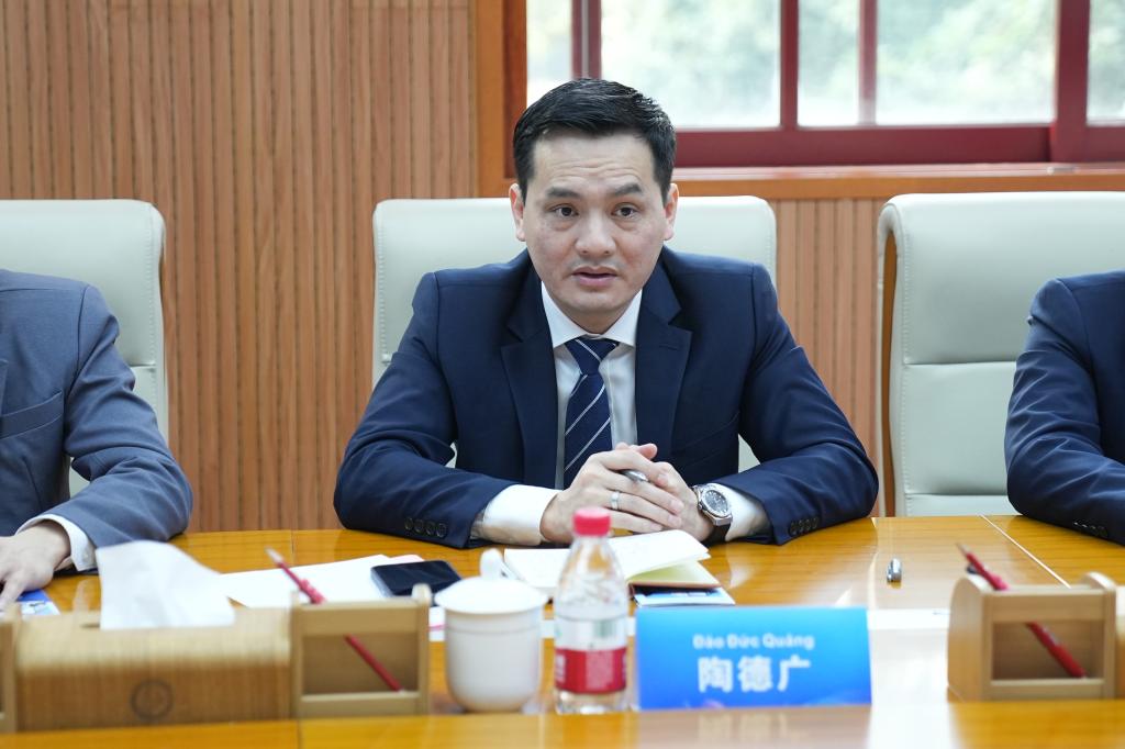 黄小敬对陶德广一行的到访表示热烈欢迎。他简要介绍了学校近年来的发展情况,特别是与越南高校开展合作办学等方面取得的成绩。他指出,学校与越南职业院校开展国际化合作有着良好的基础,去年学校在越南筹建了“中国-东盟(越南)智能制造工匠学院”等合作平台,希望双方充分利用好这些平台,加快推动中越职业教育国际化人才培养合作项目尽快落地,为构建具有战略意义的中越命运共同体作出各自的贡献。