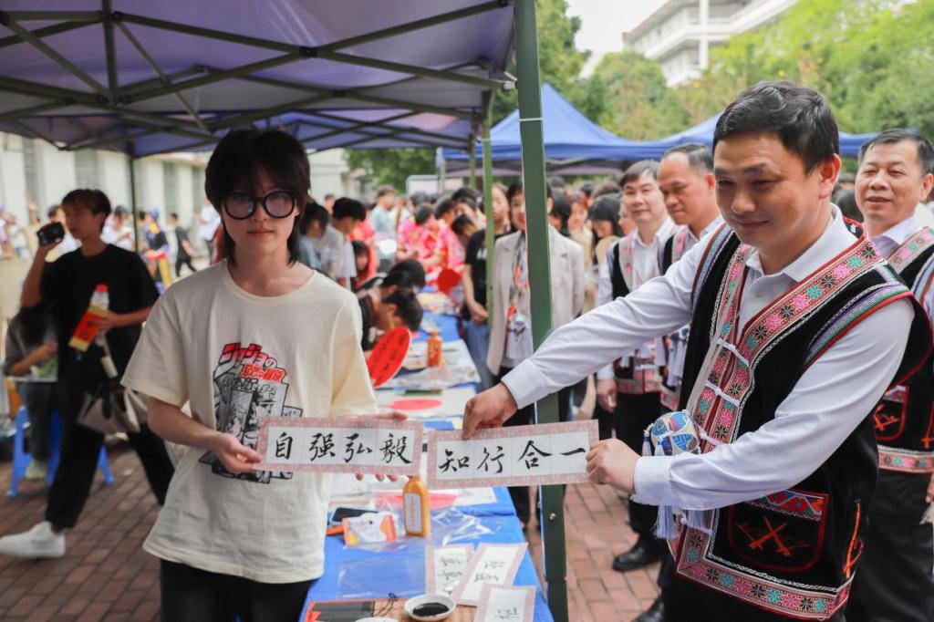 吴世先在开幕词中代表学校党委和行政,对本次活动的顺利举办表示热烈的祝贺。他强调,从上古时期的踏春祈福,到汉代的盛大节日“上巳节”,再到如今广西各族人民共同庆祝的特色节日,“三月三”已经成为我们文化传承和民族团结的象征。在这个特殊的日子里,我们不仅要欢庆节日,更要铭记历史,传承文化,弘扬民族精神。2023年12月习近平总书记在考察广西时强调,要把铸牢中华民族共同体意识作为各项工作的主线。我们举办此次主题活动,正是贯彻落实习近平总书记重要指示精神的具体行动。今年是新中国成立75周年,也是学校加快建设“广西领先、国内一流、国际知名的高水平智能制造特色校”的重要一年。在刚刚结束的2024年广西职业院校技能大赛中,taptap官网师生取得了突破历史的好成绩,充分展示了taptap官网的教育教学水平和师生的精神风貌。相信在全校师生的共同努力下,机电必将呈现更具实力、更富活力、更有魅力的崭新面貌。