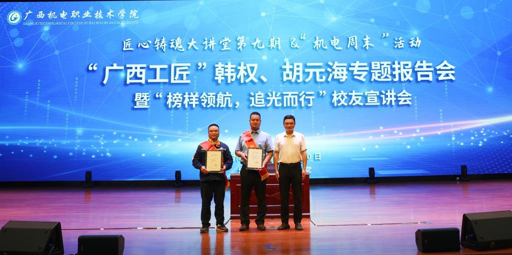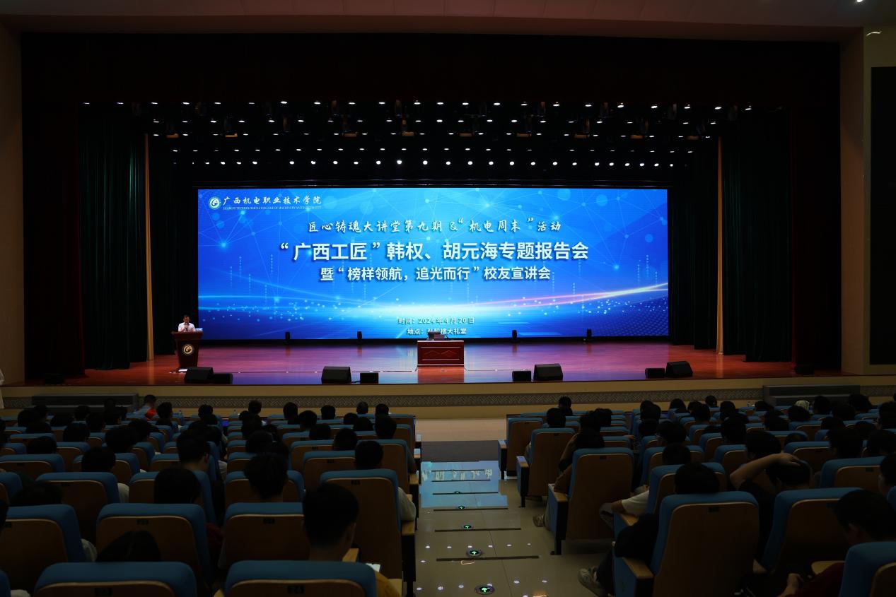 4月20日,第九期“匠心铸魂大讲堂”暨“机电周末”活动在学校弘毅楼大礼堂举行,“广西工匠”、taptap官网优秀校友韩权、胡元海结合自身经历与工作实践,为现场师生进行了“广西工匠”系列专题报告。学校党委副书记、校长吴世先,校长助理黎盛寓出席报告会,报告会由智能焊接技术学院党委副书记文小满主持。