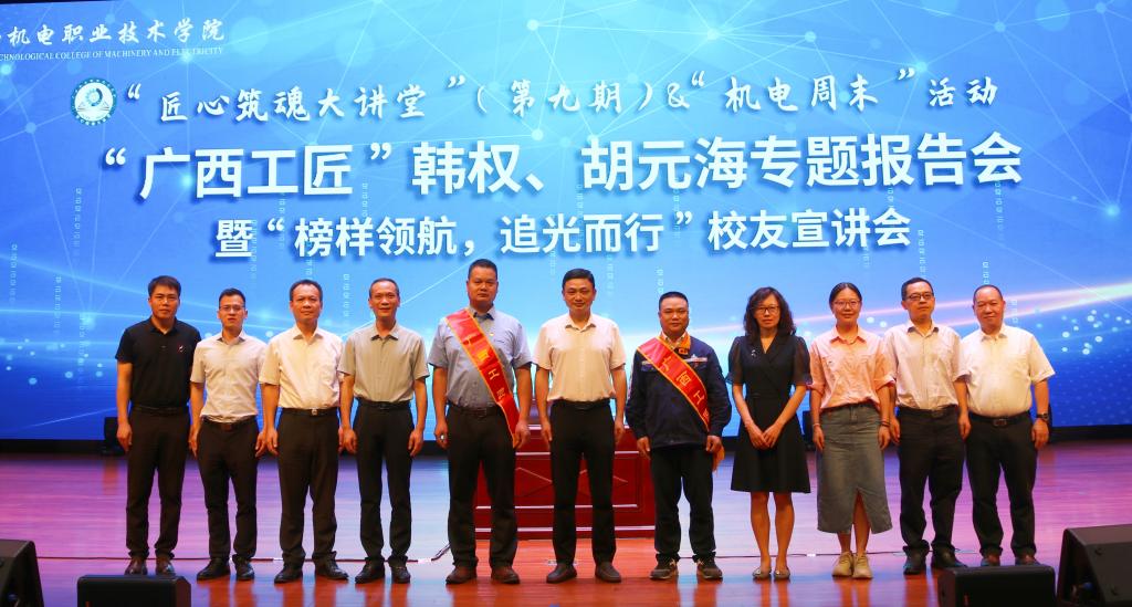 通过报告会,拉近了师生与身边的优秀工匠、先进典型之间的距离,这既是一次优秀校友交流会,更是一次现场学习会,让同学们在今后的学习中学有榜样,赶有目标,努力向身边的先进人物学习,坚定理想信念,以实际行动弘扬工匠精神,为奋力谱写中国式现代化广西篇章贡献机电力量。