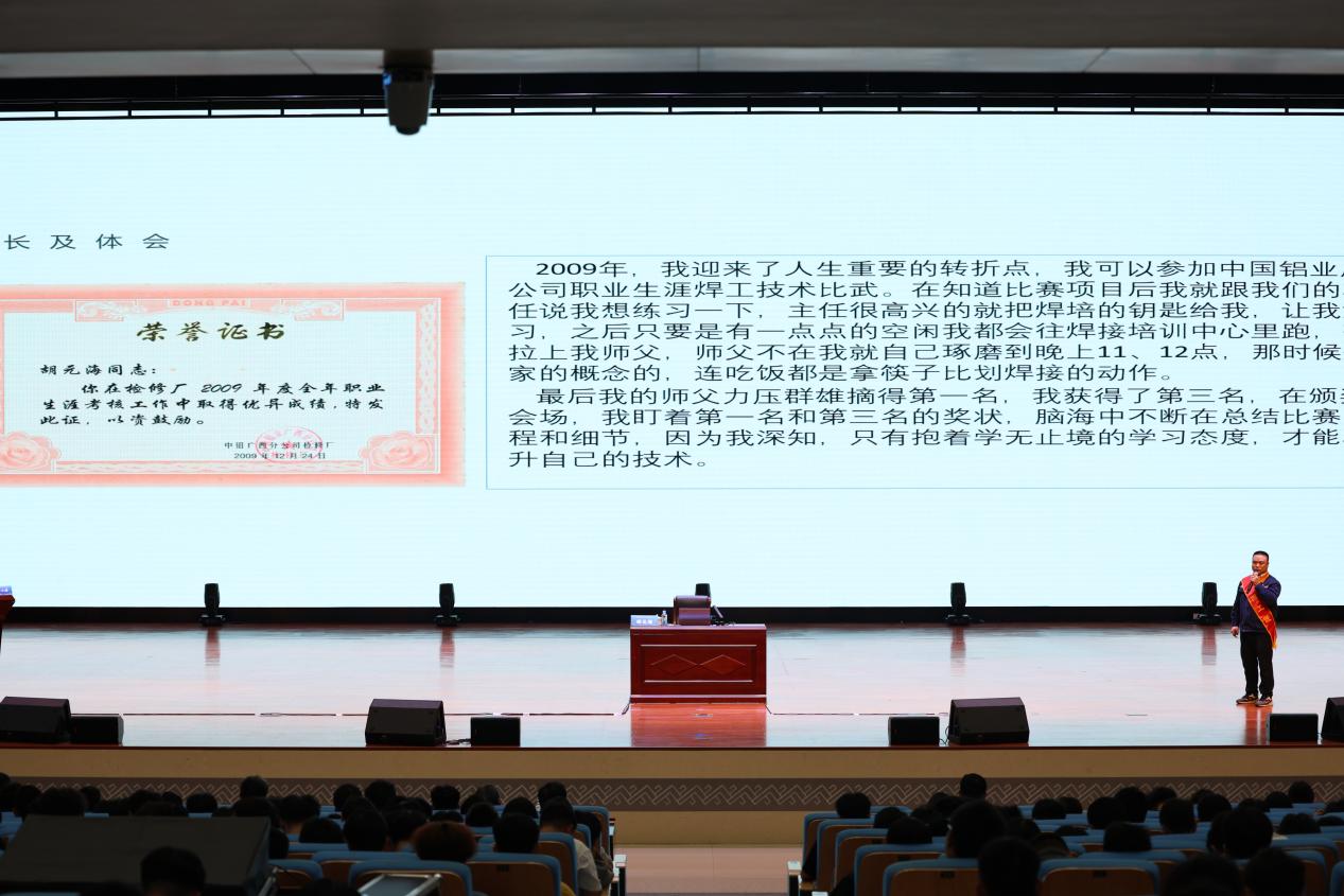胡元海以《不懈努力,超越自我》为题,分享了自己的成长体会和取得的成就。他结合自身经历,分享了学习、工作及成长经验。他强调,工作要坚持不懈,只有持之以恒地努力,才能在技能上取得突破。他同时鼓励同学们要敢于挑战自我,不断超越自己的极限,实现自我价值的最大化。技能成才、技能报国,希望同学们努力学习,砥砺奋进,将所学技能用于实践,为国家发展贡献自己的力量。