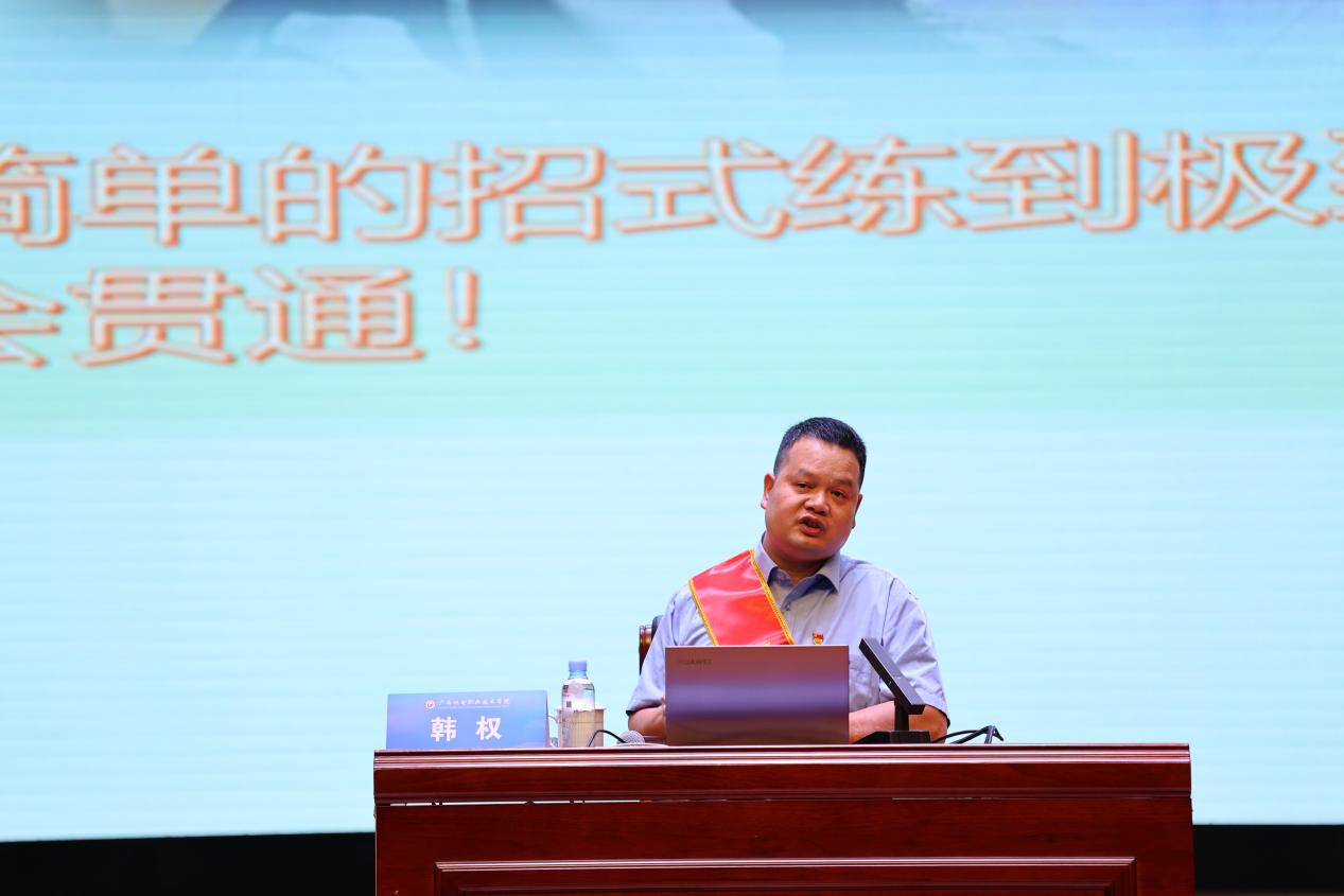 韩权的报告以《笃志前行,努力追寻生活中最亮的光》为题,深入剖析了如何在求学道路上抓住机遇,锤炼技能,以及在面对困难时如何勇于突破自我,准确定位自身价值的成长历程。韩权强调,每个人心中都有一束最亮的光,那就是我们的梦想与追求。他鼓励同学们要坚定信念,勇于追梦,不畏艰难,勇往直前。他用自己的成长经历告诉大家,只有通过不断学习、不断实践,才能持续提升技能水平,为实现自己的人生价值打下坚实基础。