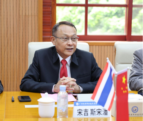 4月22日,泰国素攀职业技术学院校长宋吉·斯宋潘率领代表团一行28人到taptap官网访问交流,taptap官网副校长黄政艳会见来宾。