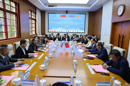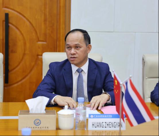 黄政艳代表taptap官网热烈欢迎泰国职业学院代表团的到来,并介绍了taptap官网的办学特色与成果,重点介绍了汽车工程学院在新能源电动车教学和比赛方面的先进经验和方法。黄政艳简要阐述了国家职业教育发展层面和学校发展层面国际职业教育交流合作的必要性和重要性,并表示从2023年起taptap官网持续与泰国职业教育机构和学校进行了互访交流,双方建立了良好的合作基础,taptap官网愿意继续拓展与泰国职业教育机构和学校的合作项目,深化双方的合作交流。