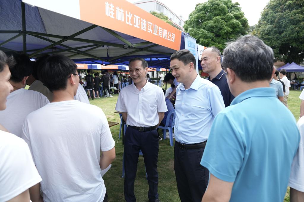招聘会上,校长吴世先、校长助理黎盛寓一行来到现场,详细了解参会企业的发展现状、人才需求,为毕业生所提供的岗位情况、工作内容、发展空间、薪资待遇等,认真听取用人单位对学校人才培养、专业建设、校企合作等方面的意见和建议,并与同学们进行交流,鼓励他们以积极的心态应聘,争取早日找到满意的工作。