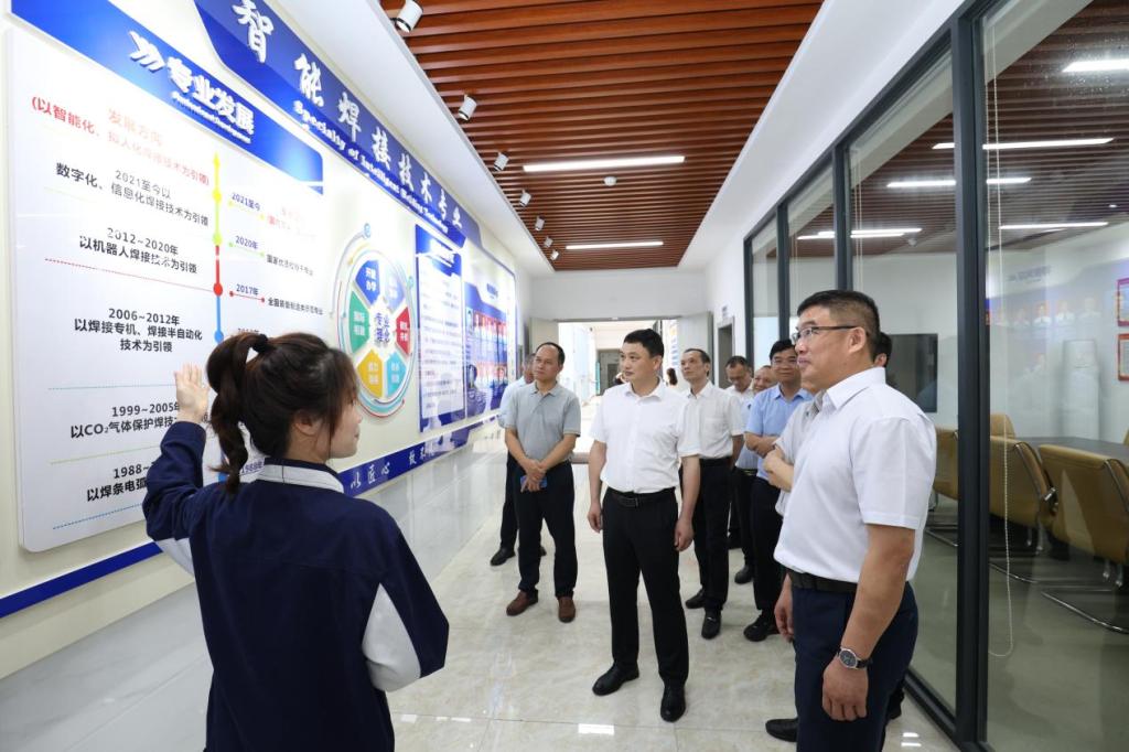 在智能焊接技术学院,听取了智能焊接技术高水平专业群发展情况汇报,对智能焊接技术专业在人才队伍建设、科教融汇、能工巧匠培育等方面取得的成果表示赞赏,希望学校继续打造特色、发挥优势,在融入地方、对接产业中实现学校高质量发展。