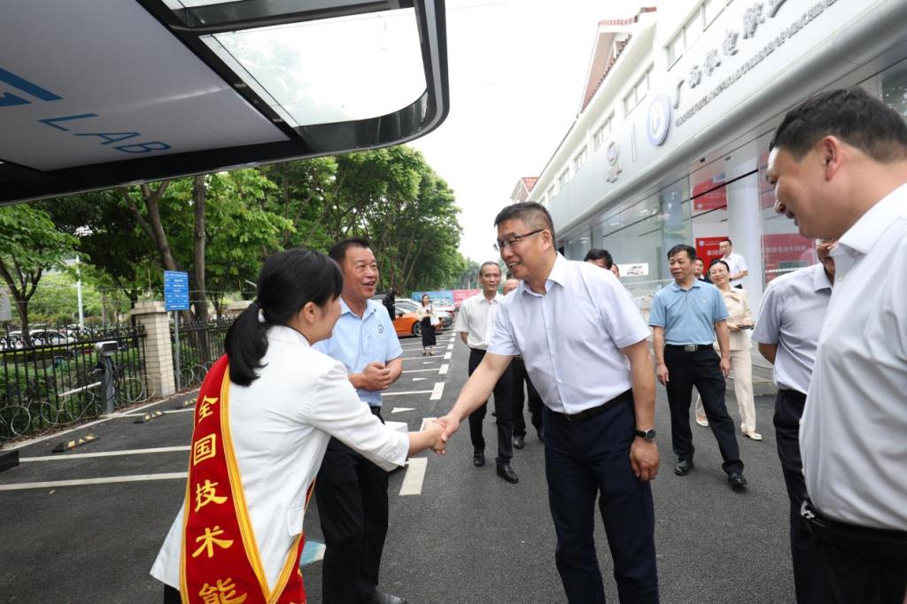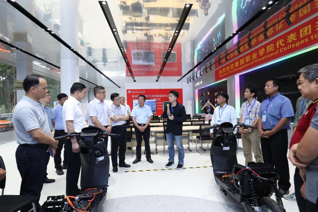 在汽车工程学院,调研了学校通过创新性地实施“四教改革”打磨金课、培育金师、建设金地的具体做法,勉励全国技术能手莫荣珍在岗位中作出更大贡献。林宇还与正在该学院进行新能源电动车培训的泰国代表团进行了交流,详细了解学校职教出海情况。