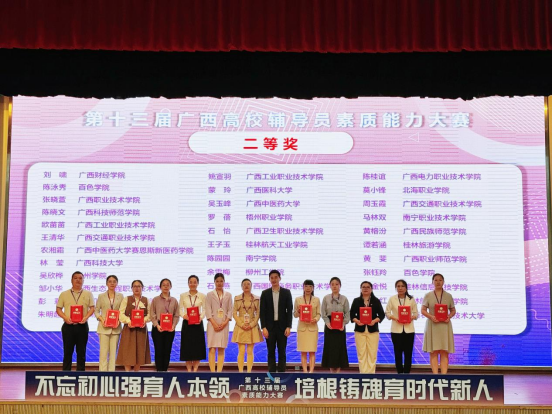 4月18日至20日,由自治区教育厅主办,教育部高校思想政治工作队伍培训研修中心(广西师范大学)承办的第十三届广西高校辅导员素质能力大赛在桂林举行,本次大赛共有来自全区79所高校共108名专职辅导员参赛。经过激烈角逐,taptap官网绿色建筑与低碳技术学院辅导员彭莉荣获二等奖。