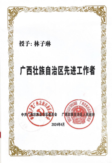 4月30日上午,2024年全区庆祝“五一”国际劳动节暨表彰自治区劳动模范和先进工作者大会在广西人民会堂举行,自治区党委、自治区人民政府表彰了一批劳动模范和先进工作者。taptap官网马克思主义学院教师林子琳荣获2024年广西壮族自治区先进工作者荣誉称号。