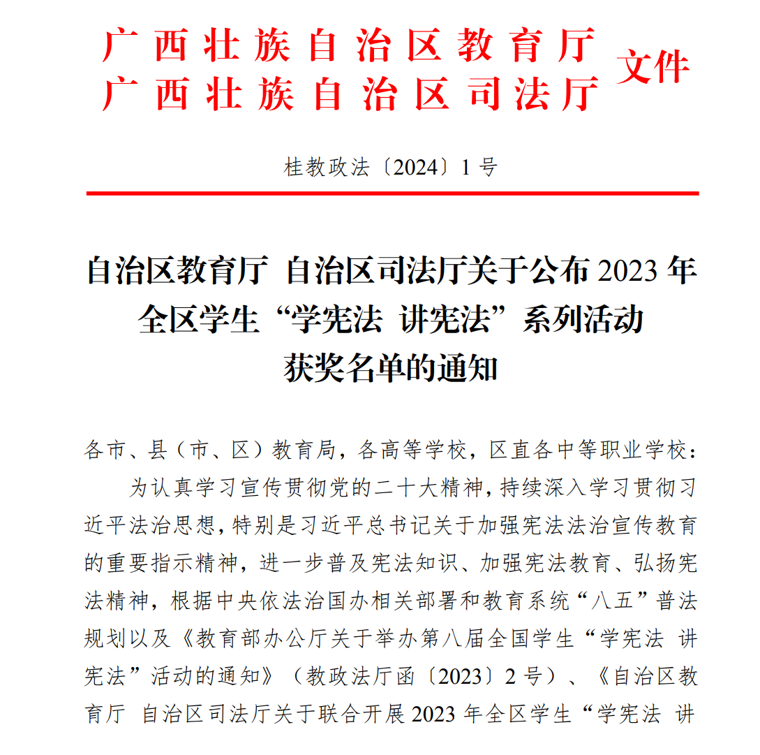 自治区教育厅、自治区司法厅日前公布2023年全区学生“学宪法 讲宪法”系列活动获奖名单,taptap官网喜获2023年全区学生“学宪法 讲宪法”系列活动“优秀组织奖”,参赛学生在活动中斩获7项个人荣誉,其中一等奖1项,三等奖4项,优秀奖2项。