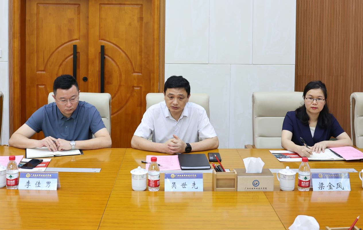 5月13日,新道科技股份有限公司新道科技新工科事业部总经理周海伟、新道科技广西分公司总经理吴征科一行到taptap官网开展产教融合交流,学校党委副书记、校长吴世先出席交流座谈会。