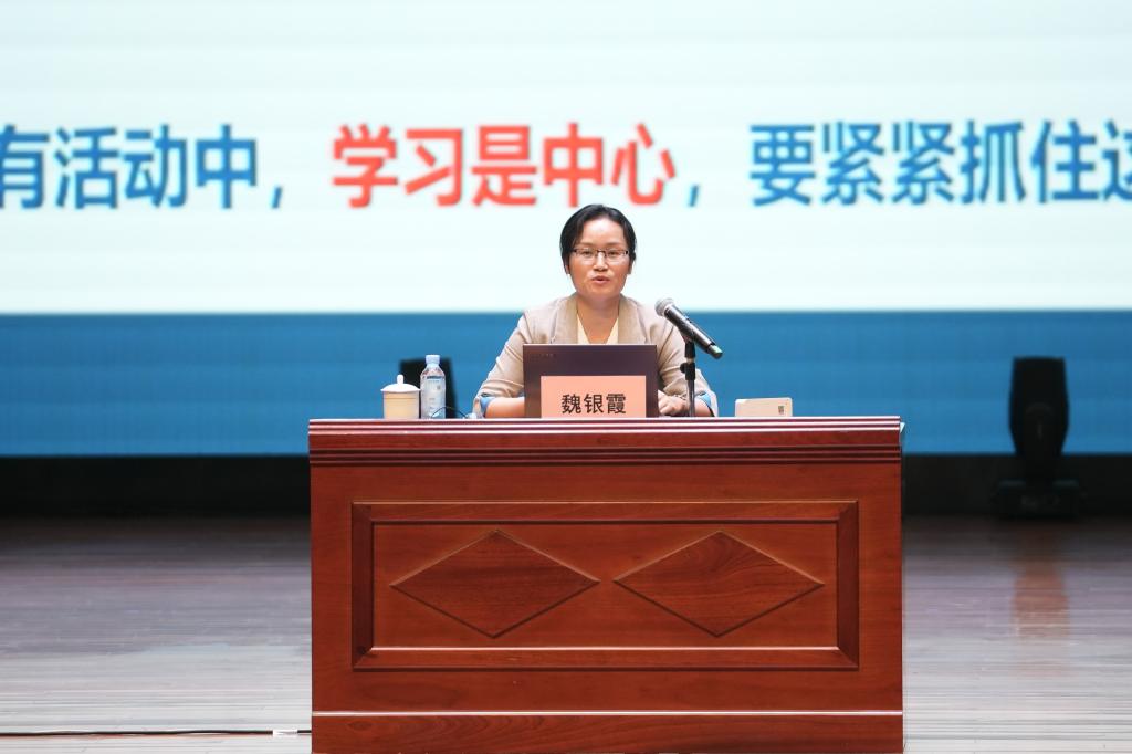 大会第二阶段,学校特邀桂林电子科技大学教学质量监测与评估中心主任魏银霞教授作了题为《OBE理念下的大学教学改革》的专题辅导报告。魏银霞教授从OBE理念的内涵及大学教学、提升学生学习成果的教学模型、桂电实施OBE的历程与成效三个方面,结合最新的形势政策,为教职员工系统介绍了OBE理念下课程教学设计创新实践做法、课程目标达成的评价方法和路径。