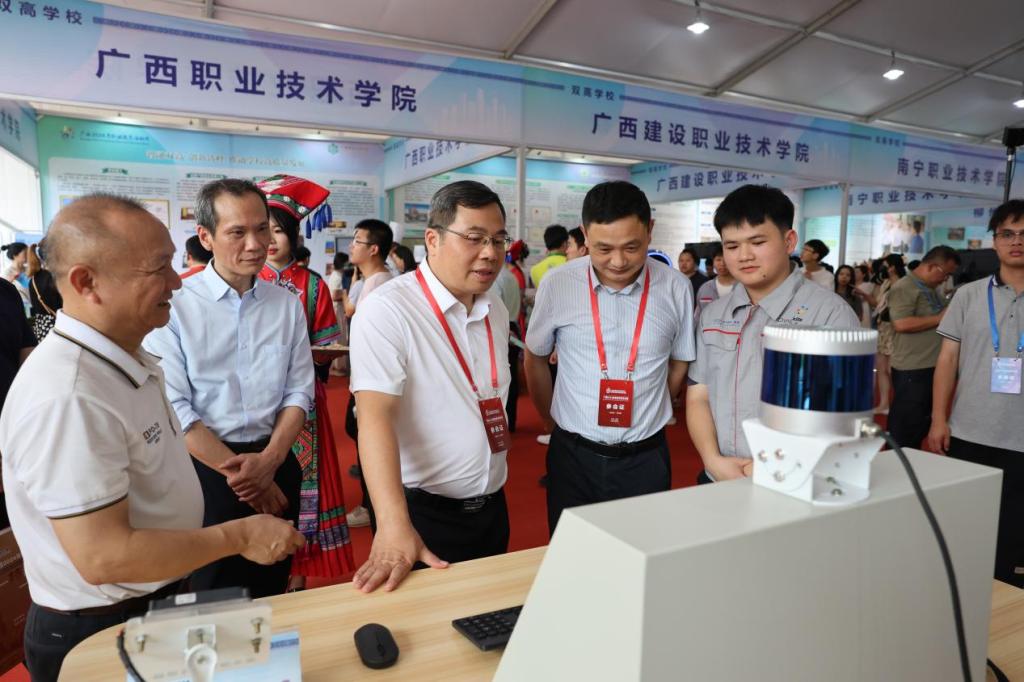 吴世先在参观中指出,职教周是深入贯彻落实习近平总书记关于职业教育的重要讲话和重要指示批示精神,全面落实立德树人根本任务,大力培养高素质技能人才,助力发展新质生产力,充分展示职业教育水平的重要载体,要结合典型人物、典型经验和典型事迹,深度挖掘案例闪光点,开展形式多样的宣传活动,诠释“技能强国”的理念,激励更多年轻人走技能成才、技能报国之路。