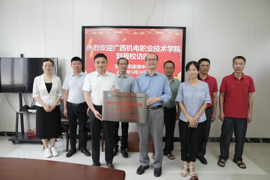调研期间,吴世先代表学校向玉林市田家炳中学授予研学实践教育基地共建单位牌匾,为进一步推动两校优势互补、共同发展打下了良好的基础。
