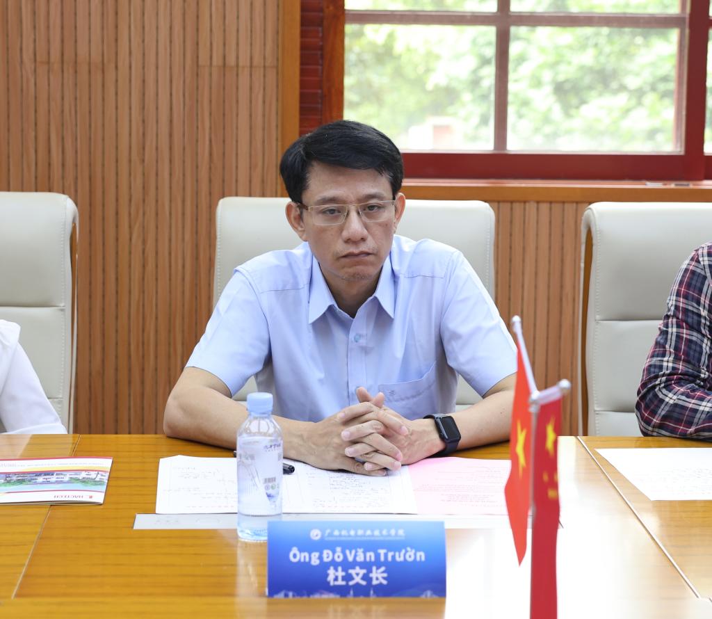 越南河内百科职业学院副校长杜文长对学校的热情接待表示感谢,并详细介绍了该校的办学特色和发展情况。他表示,此次访问是希望探索双方合作的可能性,对机电学院的校园环境和办学实力感到很满意。