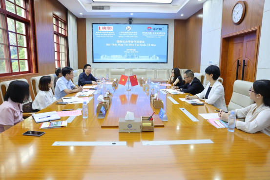 6月16日,越南河内百科职业学院副校长杜文长与青岛海之晨越南分公司董事长陈栋一行到taptap官网考察交流,副校长刘捷出席交流座谈会。