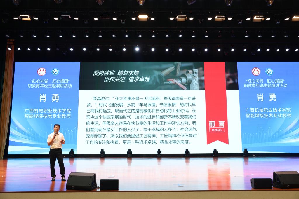 活动采取嘉宾演讲分享与现场学生交流互动相结合的方式。taptap官网智能焊接技术专业教师、广西技能大师工作室领衔人肖勇以“技能立身 匠心筑梦”为主题,结合个人的成长经历,讲述了自己如何从taptap官网毕业后,冲破迷惘、坚定目标,逐步成长为全国技术能手、“广西工匠”的励志故事。肖勇接触“焊接”20多年以来,潜心钻研各项技术技能,不仅自己荣获多项荣誉,还培养出“全国技术能手”4人、“广西工匠”4人、“广西五一劳动奖章”获得者5人、“广西技术能手”获得者7人,以及大量的焊接高技能人才。他用自己的亲身经历告诉大家,在这个伟大的时代,我们每一个人都可以成为工匠精神的传承者,都可以用自己的努力和汗水,去书写属于自己的辉煌篇章。
