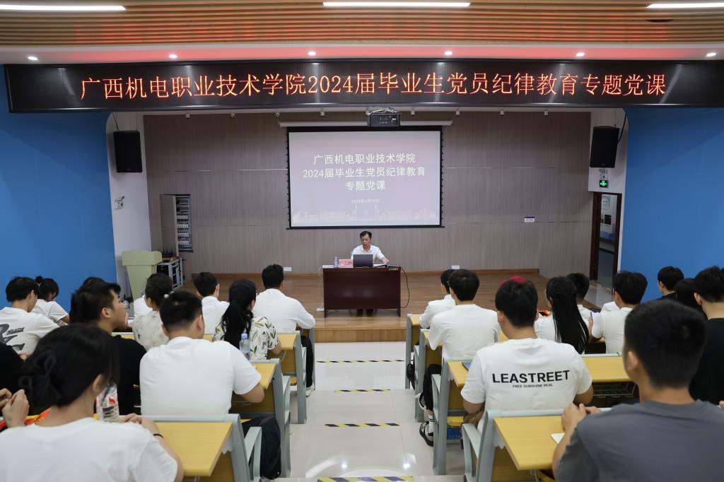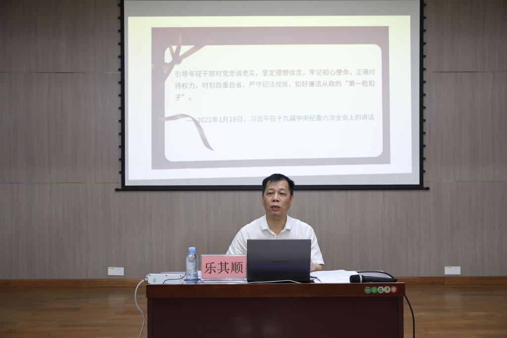 6月29日上午,在“七一”建党节来临之际,为进一步推进党纪学习教育走深走实,加强对毕业生党员的党性教育,引导毕业生党员坚定理想信念,增强守纪意识,学校纪委书记乐其顺为2024届毕业生党员讲授题为“清廉守初心 清风启新程”的纪律教育专题党课。