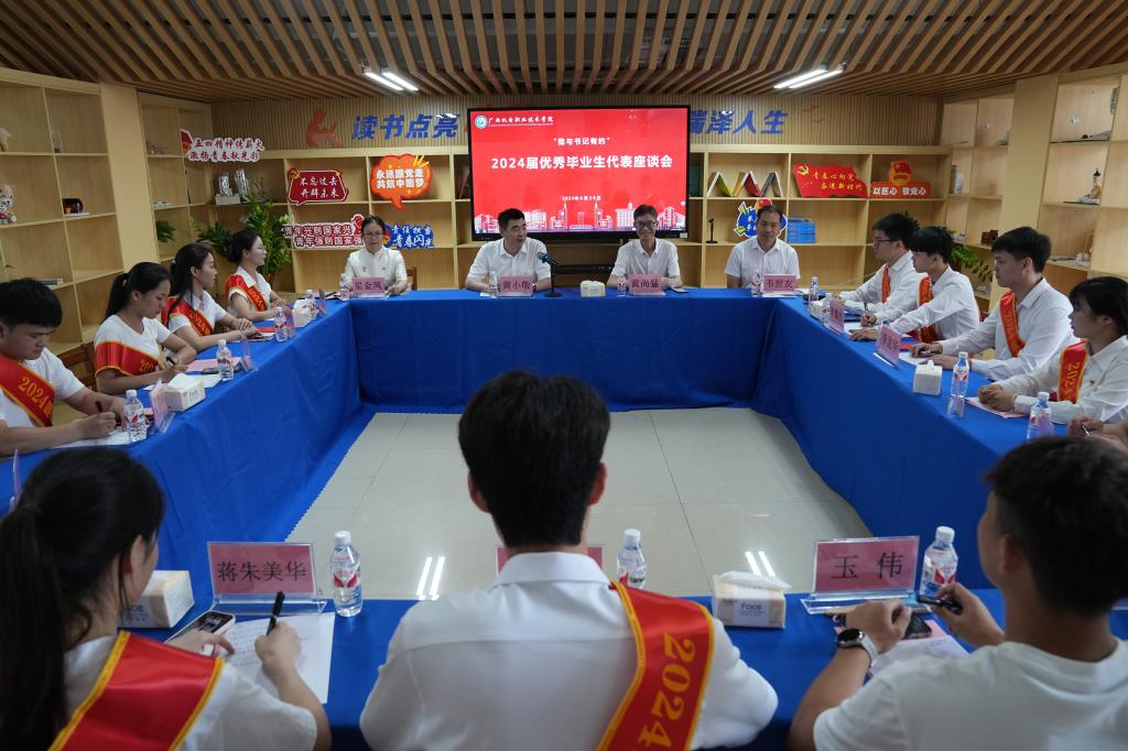 6月29日上午,“书记有约”之2024届优秀毕业生代表座谈会在学校“一站式”学生社区综合服务中心召开,学校党委书记黄小敬与毕业生代表畅谈“挺膺担当,追求卓越”。座谈会由学校党委学生工作部部长黄尚猛主持。