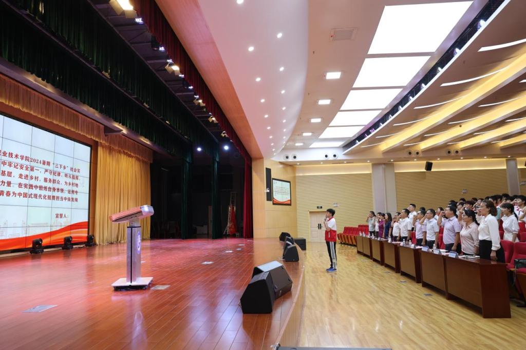 党委宣传部、党委学生工作部、二级学院负责人,“三下乡”社会实践团队师生,团委全体成员参加出征仪式。
