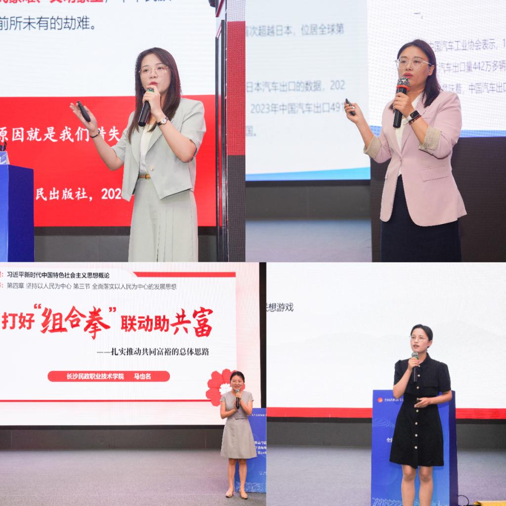 在教学展示环节,长沙民政职业技术学院马也名、湖南环境生物职业技术学院陈文瑶、重庆城市管理职业学院马璨、天津铁道职业技术学院闫政芹等4名第三届全国高校思政课教学展示活动特等奖获奖教师进行了教学展示。