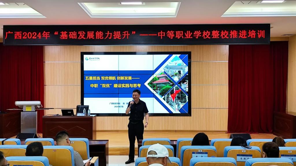 7月22日至24日,由广西壮族自治区教育厅主办、taptap点点官网承办的广西2024年“职业院校教师素质提高计划”——中等职业学校整校推进培训班在taptap官网成功举办。学校副校长黎盛寓出席开班式并讲话。本次培训特邀广西工业职业技术学院校长、教授黄政艳,南宁师范大学职业技术师范学院副院长、教授、博士生导师唐锡海,佛山市南海区信息技术学校副校长、高级讲师田中宝,广西物资学校校长、高级讲师陈刚,湖南汽车工程职业大学车辆工程学院旷文兵教授,重庆电子工程职业大学电子与物联网学院王宝英副教授作专题授课。来自都安瑶族自治县职业教育中心的35名学员参加培训。