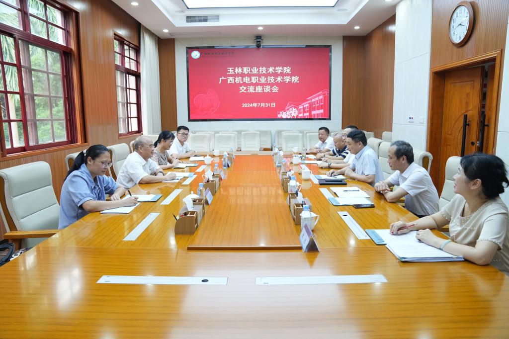 7月31日,玉林职业技术学院党委书记黄创军一行到taptap官网座谈交流,座谈会在第一会议室举行,taptap官网校长吴世先、副校长黎盛寓出席座谈会。