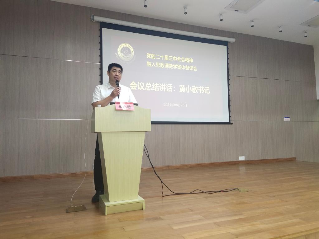8月26日,学校召开党的二十届三中全会精神融入思政课集体备课会,学校党委书记黄小敬、副校长黄振宣出席会议并观摩指导示范课。全体思政课专兼职教师80多人参加了集体备课会。