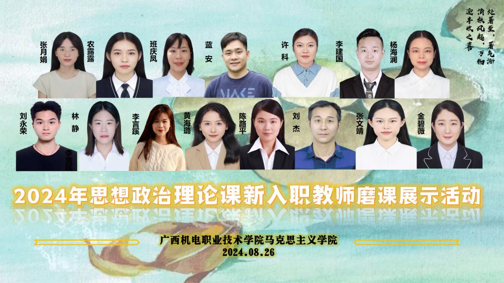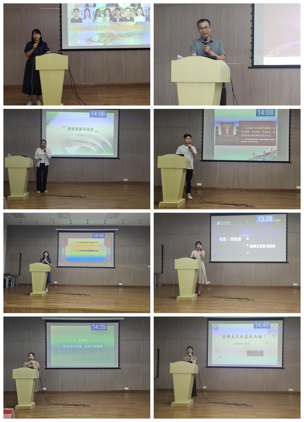 新入职教师分别从各自教学课程中选取一个知识点,将党的二十届三中全会精神融入到知识点中进行磨课展示。