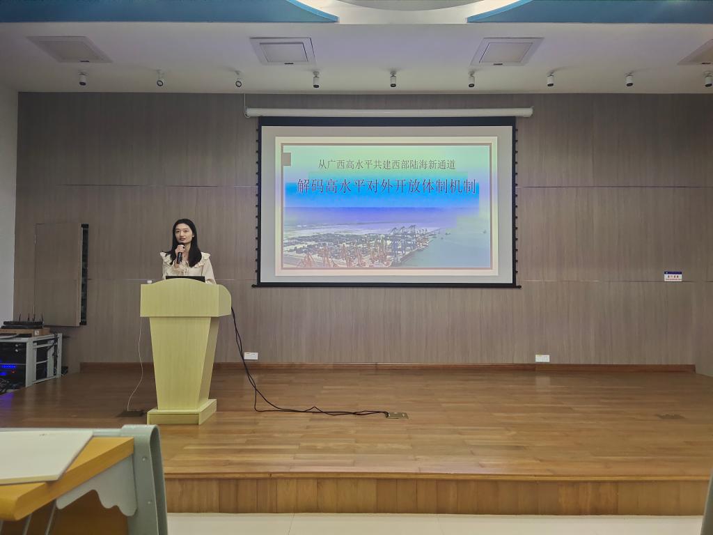 和帅、吴海燕、崔敏等三位教师就“党的二十届三中全会精神融入思政课”进行教学示范课展示,她们分别以“广西高水平共建西部陆海新通道——解码高水平对外开放体制机制”“推动中华优秀传统文化创造性转化、创新性发展”“绿水青山转化为金山银山的有效途径”为主题,将党的二十届三中全会精神有效地融入教学之中,通过生动典型的案例和深入浅出的讲解,展现了较高的教学水平。