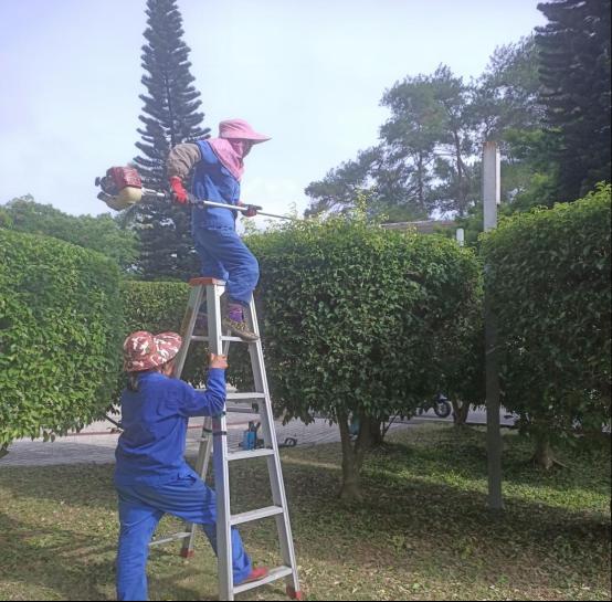 暑假期间,校园内的绿化带和道路两旁,总能看到后勤绿化保洁团队的忙碌身影。他们手持修剪工具,精心修剪每一株花草,清理每一处落叶与垃圾,让校园在夏日的阳光下更显生机勃勃。