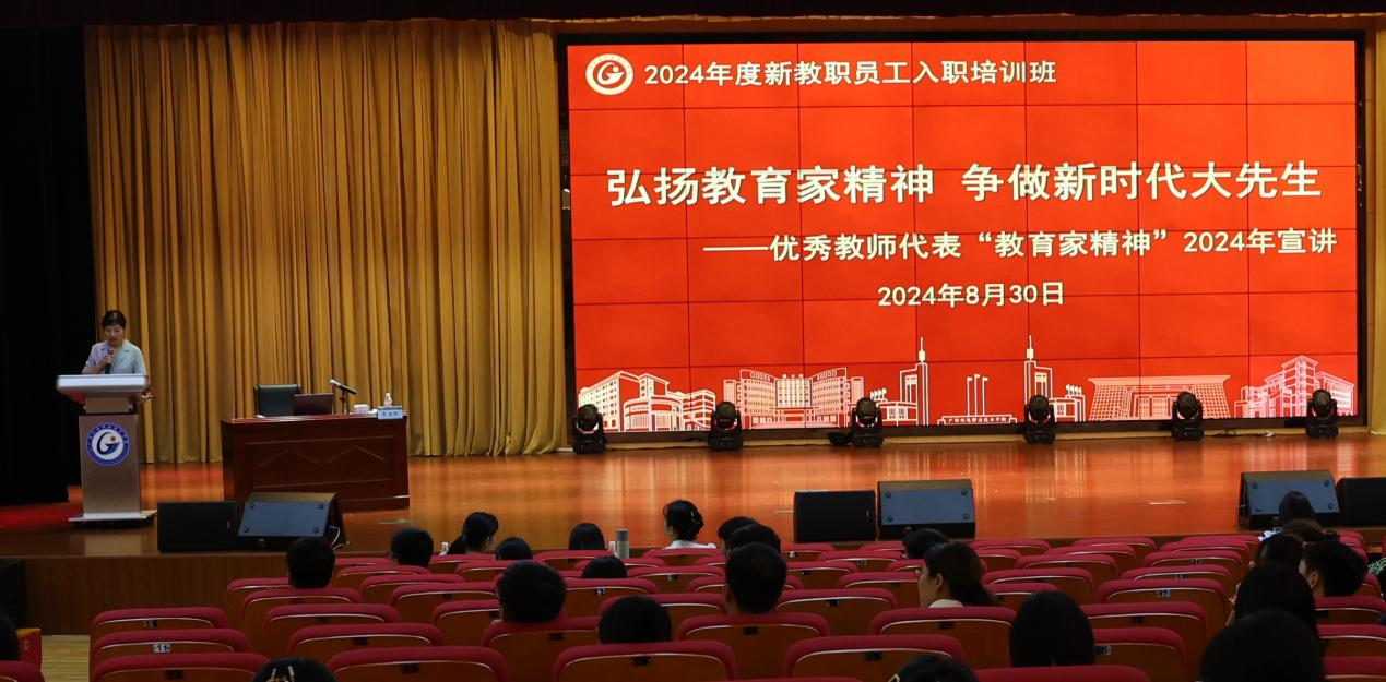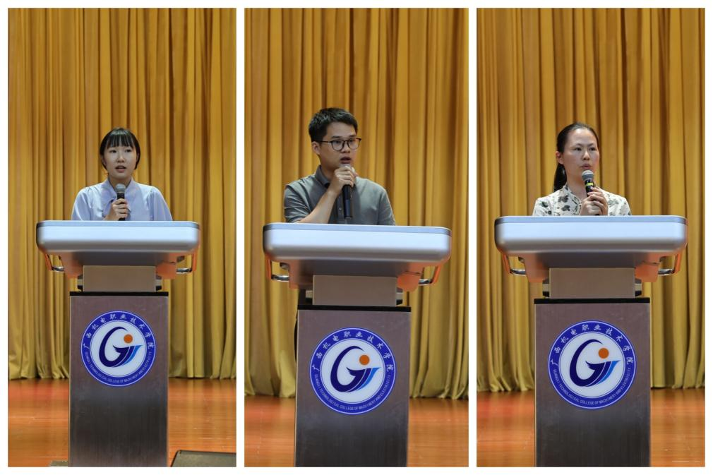 在“弘扬教育家精神 争做新时代大先生”——优秀教师代表“教育家精神”宣讲环节,国家级教学名师、国家级教学团队带头人、国家级精品课程负责人、自治区优秀专家、全国交通职业院校优秀专业带头人、交通运输部优秀教师、广西“八桂名师”、南宁市“特聘专家”、二级教授彭朝晖,省部级领军人才、中青年学术带头人、最美科技工作者、博士钟胜奎教授,全国样板支部书记、全国教学技能比赛一等奖、自治区优秀教师、自治区“双带头人教师党支部”书记工作室负责人韦波副教授,全国技术能手莫荣珍副教授,教育部第三届全国高校思政课教学展示活动二等奖、粤桂琼赣滇五省(区)高校思政课青年教师教学基本功比赛一等奖、全国职业院校教师教学技能大赛三等奖、广西高校思政课教师教学基本功暨“精彩一课”比赛特等奖、广西职业院校教师教学技能大赛课堂教学比赛一等奖获得者宁锦峰讲师等不同年龄阶段的优秀教师代表真挚地分享了个人在教学、科研、技能比赛、党建工作等方面的职业成长经历,生动诠释“理想信念、道德情操、育人智慧、躬耕态度、仁爱之心和弘道追求”的“教育家精神”,为新教职工的未来发展树立了榜样。