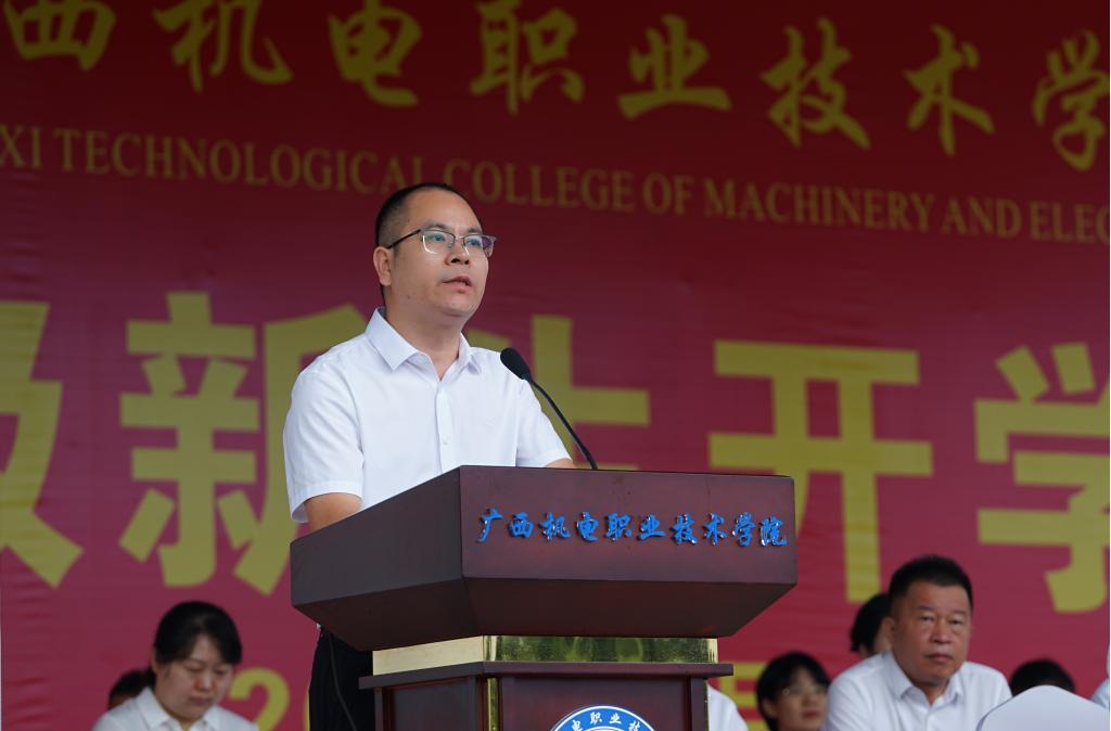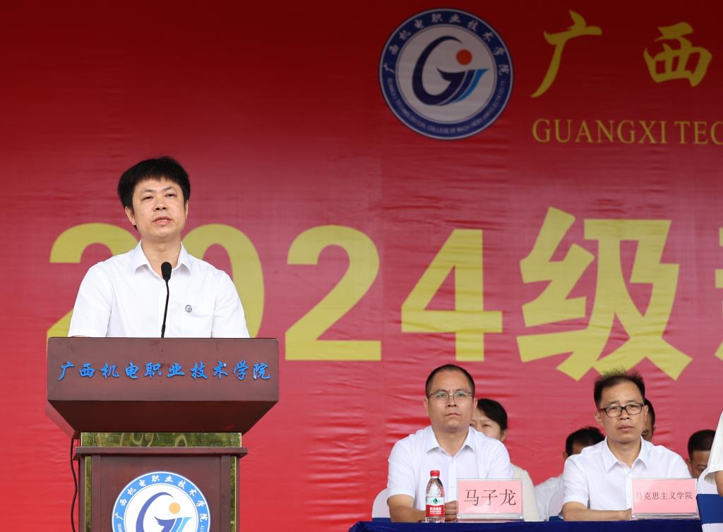 金秋送爽,梦想启航。9月9日上午,学校在相思湖校区运动场为7449名2024级新生隆重举行开学典礼。党的二十大代表、新时代汽车“智”造大国工匠、广西汽车集团有限公司首席技能专家郑志明,第十四届全国人大代表、全国技术能手、广西玉柴机器股份有限公司设备智能物联技术高级主任工程师、优秀校友李海桦,学校领导黄小敬、吴世先、程云燕、乐其顺、黎盛寓、刘捷、黄振宣,校长助理秦培林,各部门、单位主要负责人出席开学典礼,一起见证属于新生庄重而温馨的时刻。典礼由学校党委副书记程云燕主持。