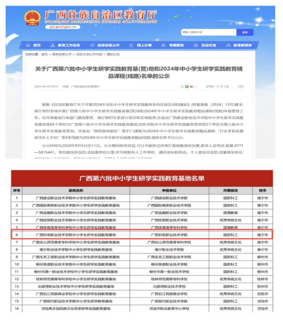 学校高度重视广西中小学生研学实践教育基地的建设和申报工作。校领导统筹协调,指导文化旅游与管理学院旅游管理专业团队教师开展课程设计、资料收集整理、氛围营造等工作,并多次邀请专家到现场指导。各二级学院围绕“技术强国、匠心育人”打造“有技”“有趣”的机电研学品牌这一思路设计了电子创客探索营、电弧3D打印、数制匠心、AI智能小车等一系列富有创意的中小学生研学课程。