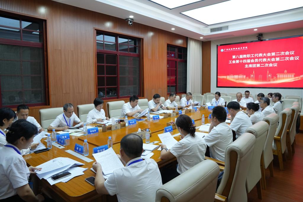 9月18日至20日,学校第八届教职工代表大会第二次会议暨工会第十四届会员代表大会第二次会议在相思湖校区弘毅楼大礼堂召开,本次大会是学校贯彻落实党的二十届三中全会精神和全国教育大会精神,实现“十四五”规划目标任务,全面推进第二轮广西“双高”建设,开启学校新征程的关键一年召开的一次重要会议,大会的主题是“进一步全面深化改革 汇聚高质量发展力量”。学校领导黄小敬、吴世先、程云燕、乐其顺、黎盛寓、刘捷、黄振宣,校长助理秦培林出席会议。151名正式代表参加了会议。受邀的民主党派代表、离退休老同志老领导代表和学校中层干部代表列席了大会。学校党委书记黄小敬、党委副书记、校长吴世先主持主席团会议,学校纪委书记乐其顺主持正式会议,学校党委副书记程云燕主持闭幕会。